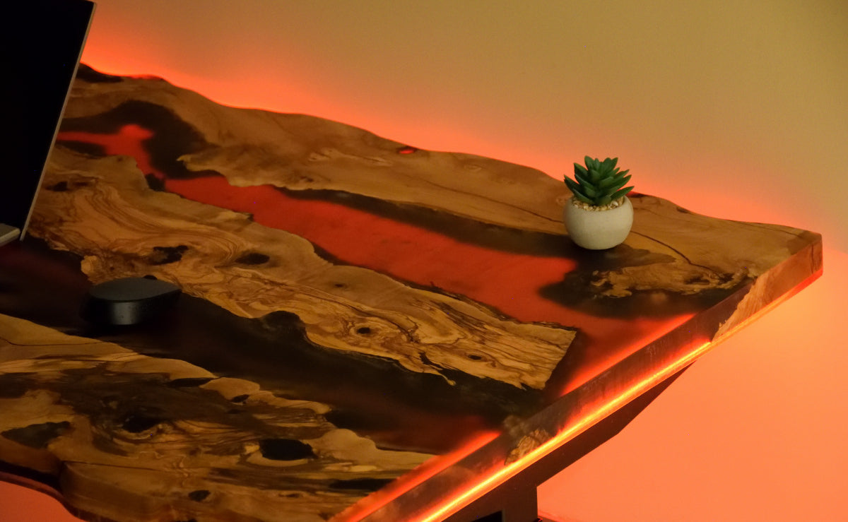 And if you can't decide on a color, you can always add the best lighting on the market, from the Italian brand Twinkly with its Flex model, which we'll install slotted into the bottom of your table. With it, you can illuminate your clear epoxy in any color you prefer and configure the lighting effects from your phone with its app. Amazing, right?