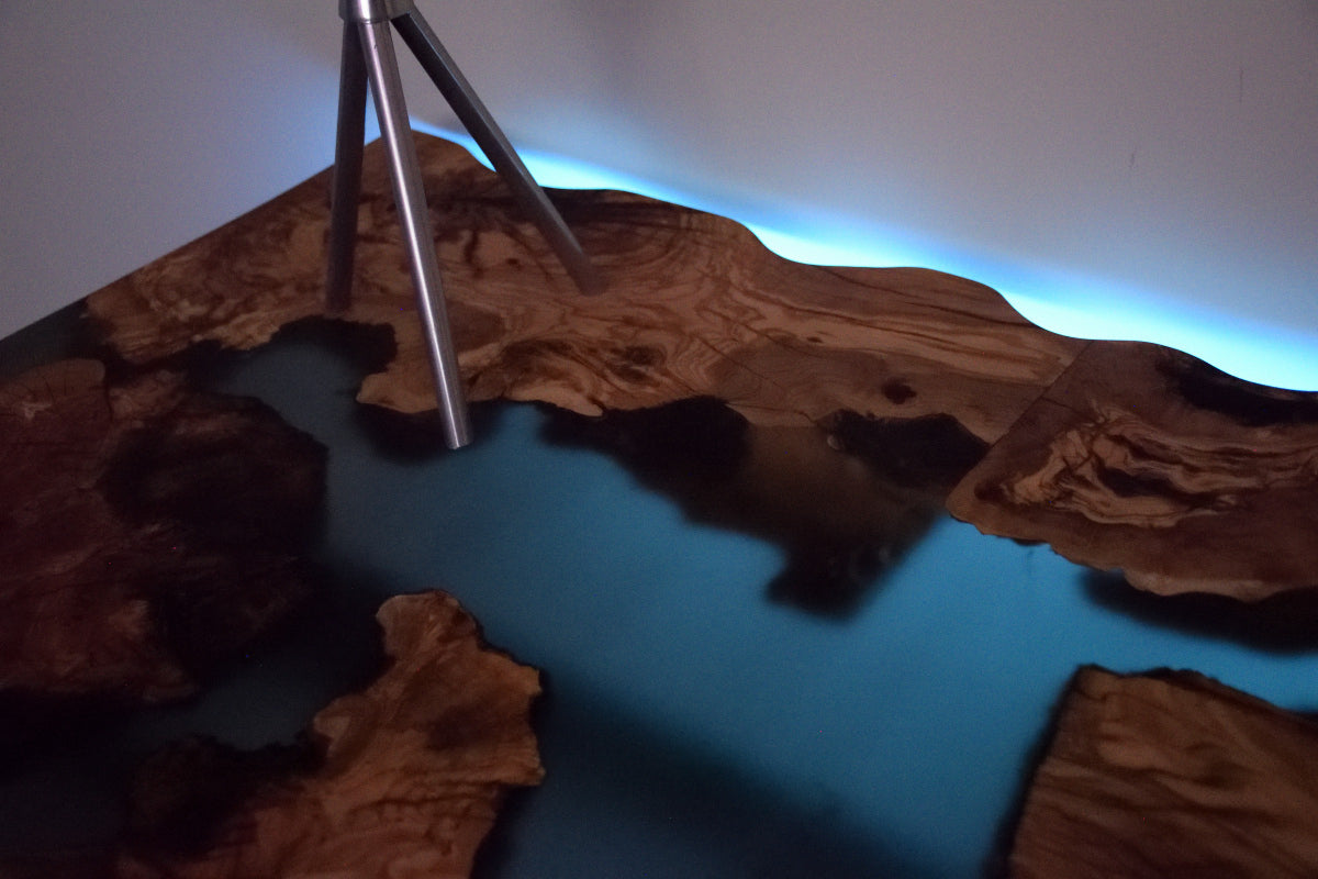 We've added a piece of art to our premium range: Olivo tables made with epoxy resin. Custom-made pieces designed to create whatever you have in mind, with a thickness of 3 to 4 cm.