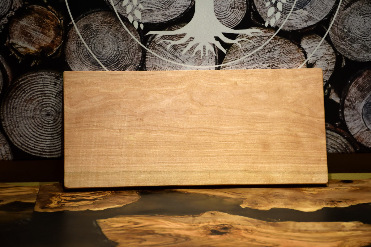 Llévate un trocito de madera natural de Lenga macizo de 40cm de largo, por 18cm de ancho y 2cm de grosor, una madera de color claro única al natural aceitada, grabada con laser con el nombre o alguna palabra especial que nos indiques.
